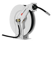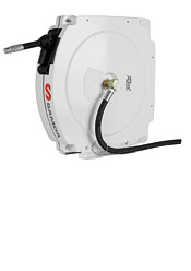 Enrouleur carrossé pour air, eau à basse et haute pression, lubrifiants à moyenne pression et graisse à haute pression.