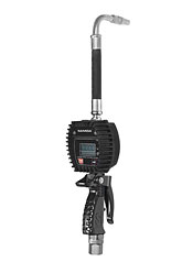 Compteur à engrenages ovales avec affichage digital LCD 366 750 alimenté par deux piles alcalines AAA de 1,5 V très facilement remplaçables. Trois compteurs, un par opération (jusqu’à 999,9 litres) avec remise à zéro, un partiel que l’on peut remettre à zéro à tout moment, et un totalisateur affiché en permanence, sans possibilité de remise à zéro. Poignée de distribution légère et robuste comprenant un raccord tournant à roulement à billes et un filtre facile d’accès pour le nettoyage. Contrôle du débit progressif en fonction de l’ouverture de la gâchette. Le compteur est fourni avec une protection caoutchouc.